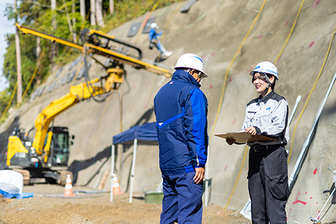 - 現場巡視(作業の進捗状況と安全確認、測量など)