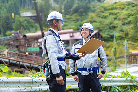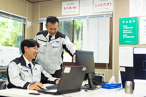 - 主に現場管理です。日中は現場にて、安全管理,出来形管理,品質管理,等を行います。事務所では、書類の作成や明日以降の現場の段取りをしています。